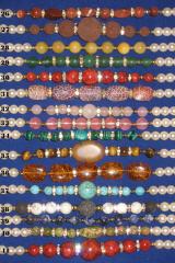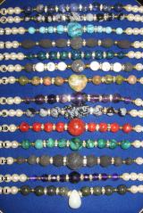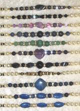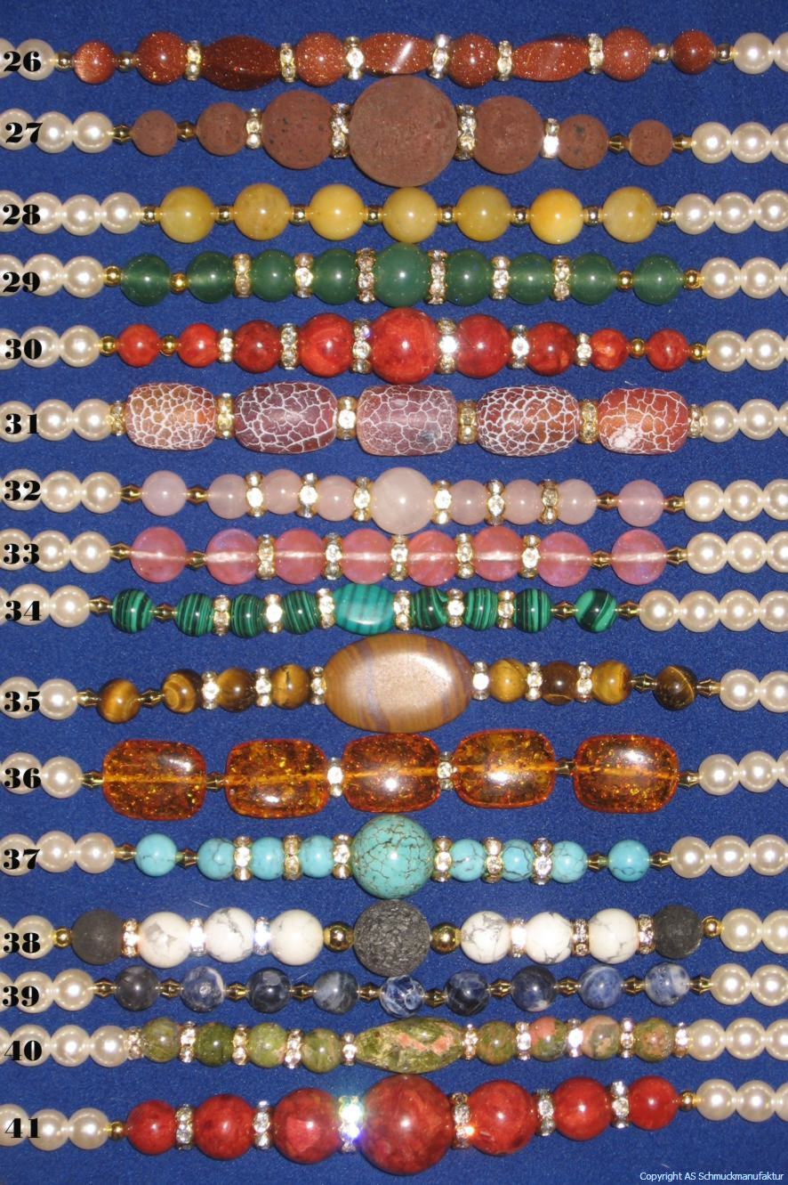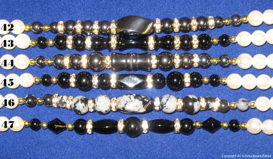 Klassische kurze Ketten, mit zentralen Schmucksteinen und mit Kunstperlen aufgefüllt, handgeknotet, Länge ca. 45 cm, Magnetverschluß