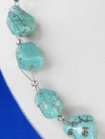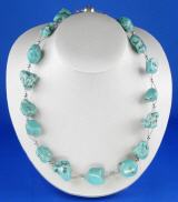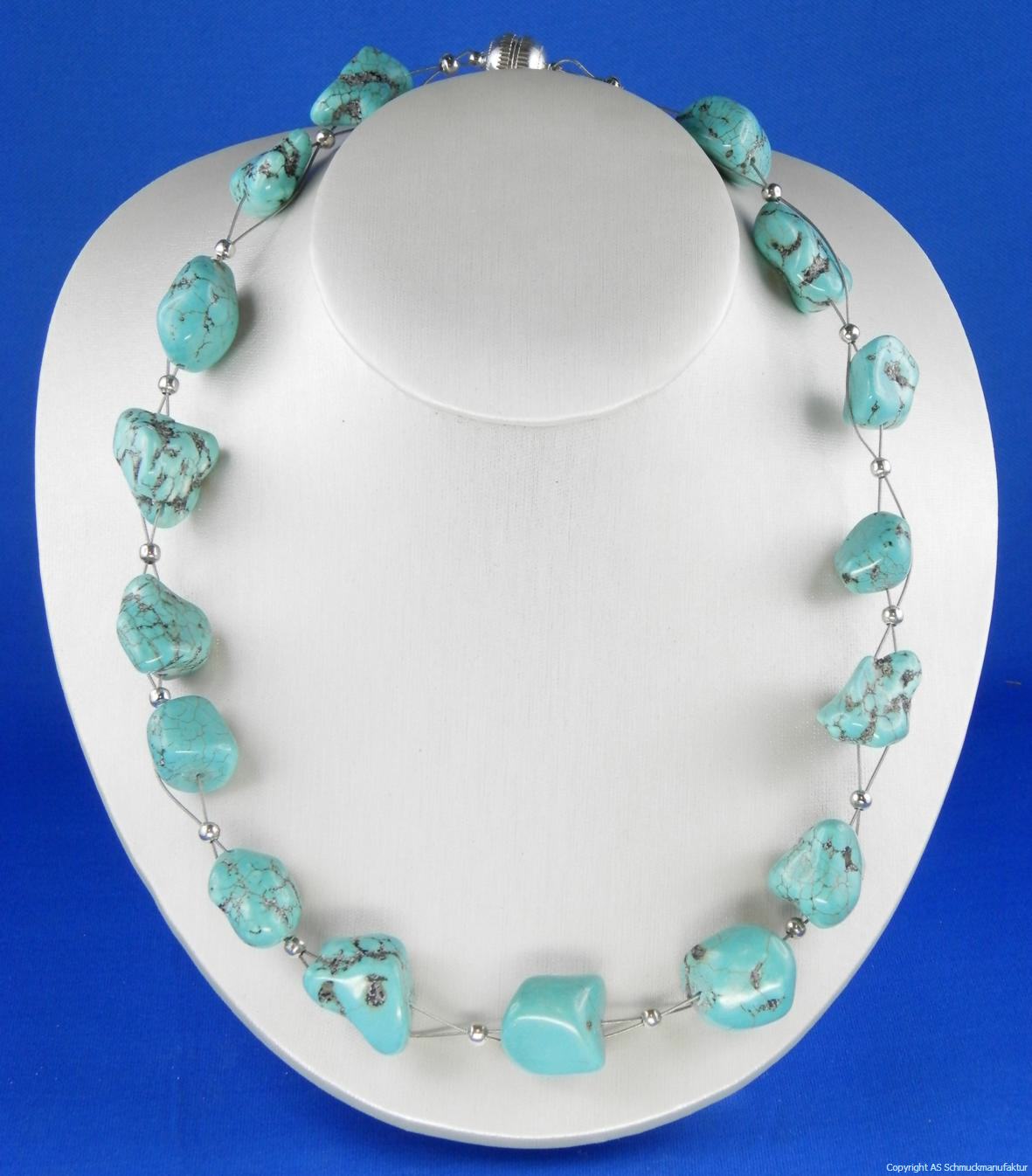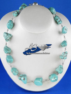 aus ca. 15-16 türkisfarbenen Howlith Nuggets, silberfarbenen Elementen (alternativ gold) und Magnetverschluß, Länge ca. 45 cm.