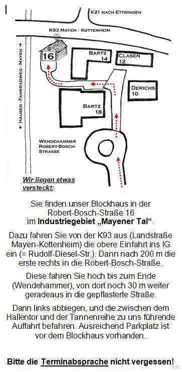 Sie finden unsere Ausstellung in unserem Blockhaus in der Robert-Bosch-Straße 16 im Industriegebiet „Mayener Tal“.
